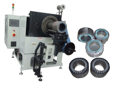 Cette machine est utilisée pour insérer le papier d'isolation dans la fente d'armature. L'opérateur doit seulement mettre plusieurs armatures de morceaux sur la voie en même temps, puis la machine accomplira le papier s'insérant automatiquement. L'écran tactile peut sauver le paramètre différent d'armature. Et cette machine peut également être équipée du convoyeur pour se relier à l'autre machine pour faire une chaîne de production d'armature.