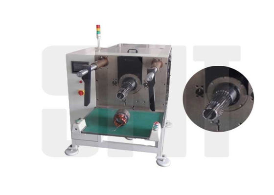 La machine « C.A./enroulement industriel de redresseur de moteurs à induction insérant la machine à vendre » est utilisée pour insérer les bobines et l'isolation électriques de cale aux fentes de redresseur automatiquement en même temps. Après l'enroulement de bobines de finition dans l'éolienne, les bobines seront dans le planton de tasse de transfert. Les opérateurs juste mettent la tasse de transfert avec des bobines dans l'outillage de insertion et mettent en marche la machine de insertion, qui formera, coupera et insérera le papier de cale ainsi que des bobines automatiquement.